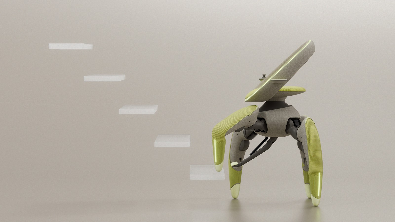 - Treppensteigen: Der Stuhl ermittelt die Treppenhöhe intelligent mit seinen Vorderbeinen, bevor er ihn mit den Hinterbeinen vorsichtig nach oben drückt.