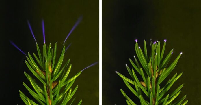 Це явище, відоме як Святе полум’я, давно документоване на об’єктах, таких як щогли кораблів та громовідводи. Вчені тепер підтвердили, що гілки дерев, особливо з восковими голками, такими як ялинки, також можуть випромінювати це фіолетове свічення під впливом сильних електричних полів. Світіння створюється формуванням плазми, наднагрітого стану речовини, у повітрі, що оточує гострі кінчики дерев.